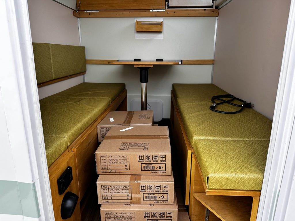 一人用に改造してあり、奥の右側の収納台は上が開いて机のようになります